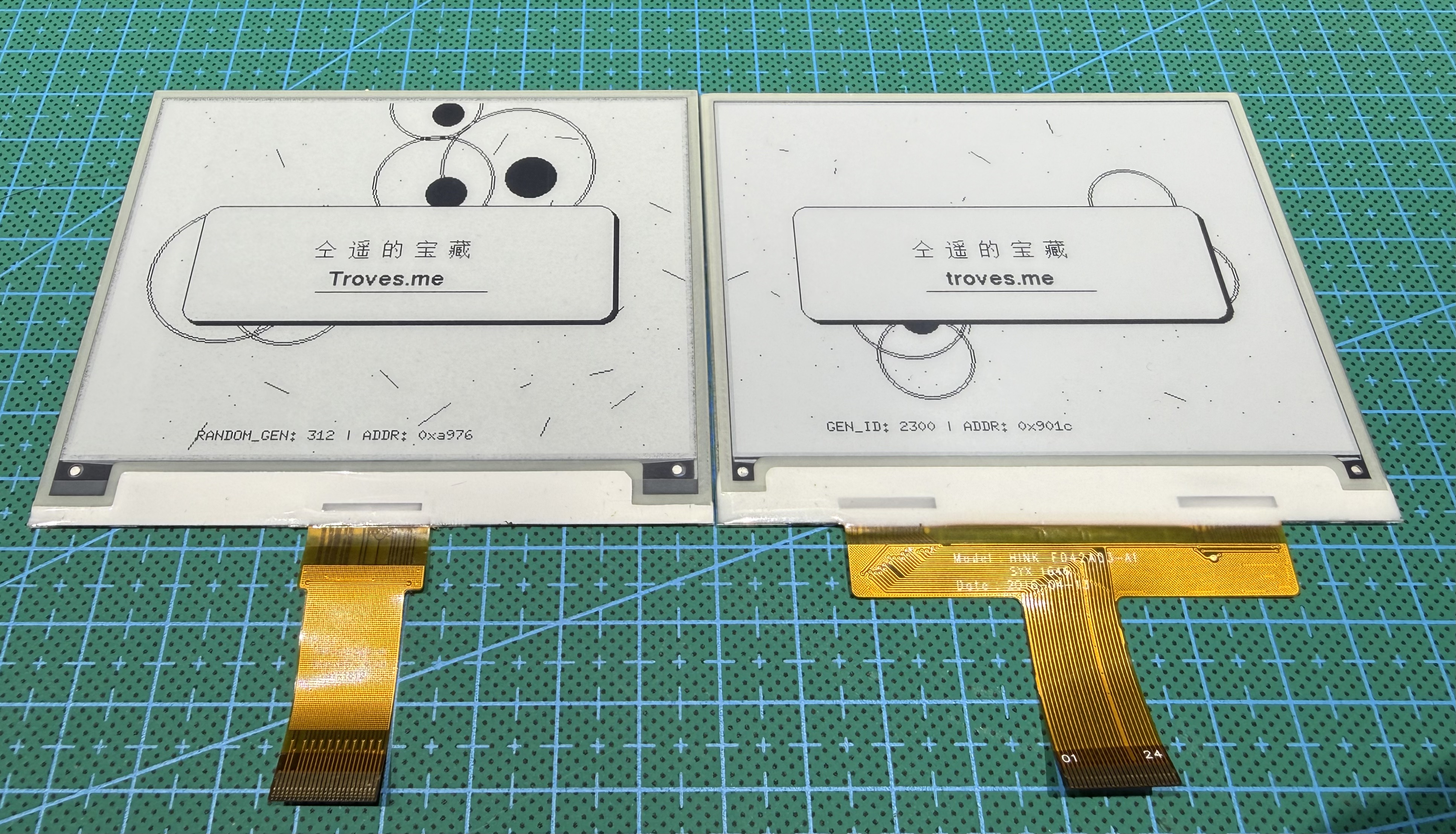 直到最近打算做一些新的硬件项目,重新翻出这堆东西,才在某个 B 站视频的弹幕里看到有人提了一嘴"双 IC 要用专门的库"。我把屏幕翻出来一看——果然是双 IC。换了某位大神魔改的 <GxEPD2_2IC_BW.h> 库——秒亮。